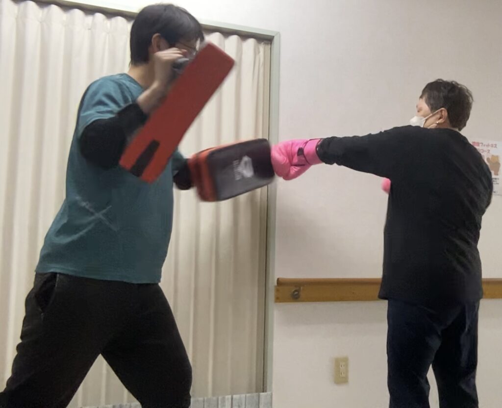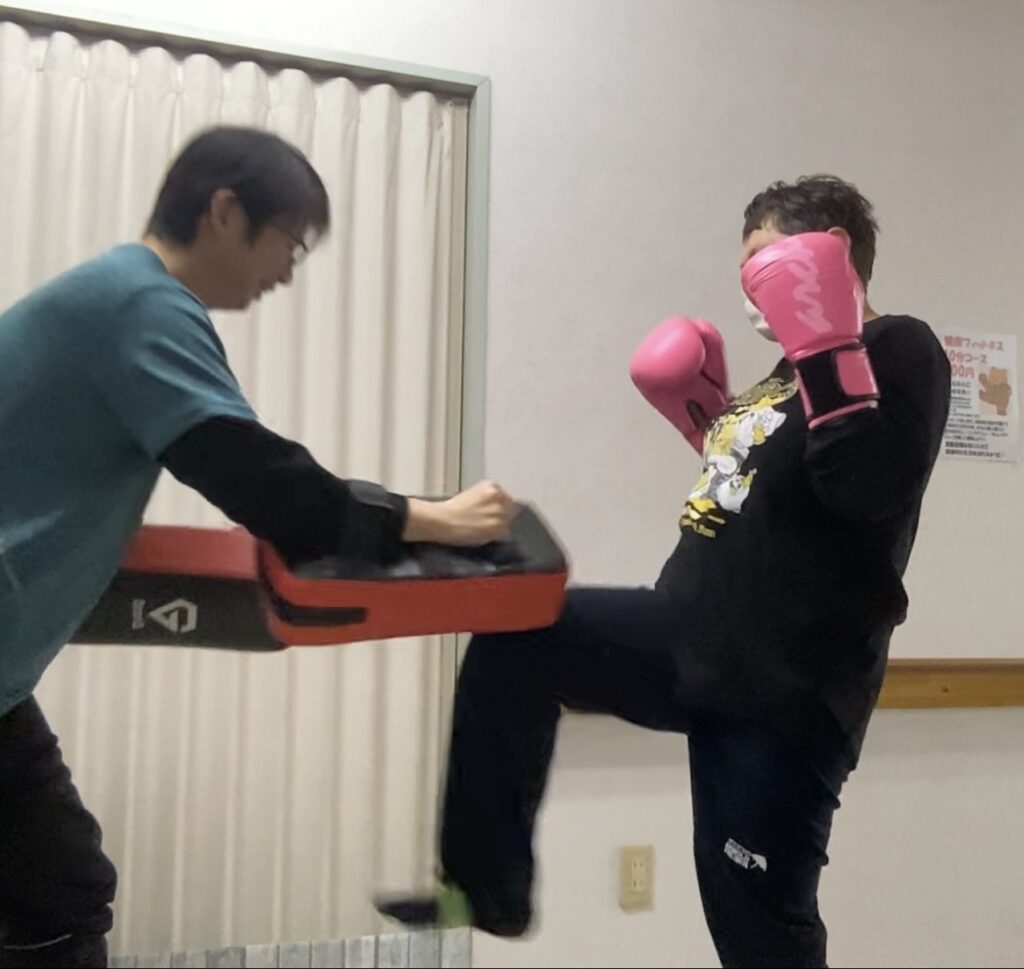 ミットを使ったパンチやキックが中心で、本格的な試合形式ではなく、
